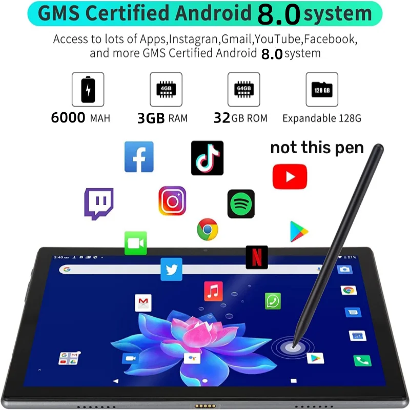2024. Najprodavaniji 2GBRAM 32GBROM 10.6 INČ 4G telefonski poziv Tablet PC Android 8 Quad Core G2 MTK9797 Type-C 6000mAh Dual Camera